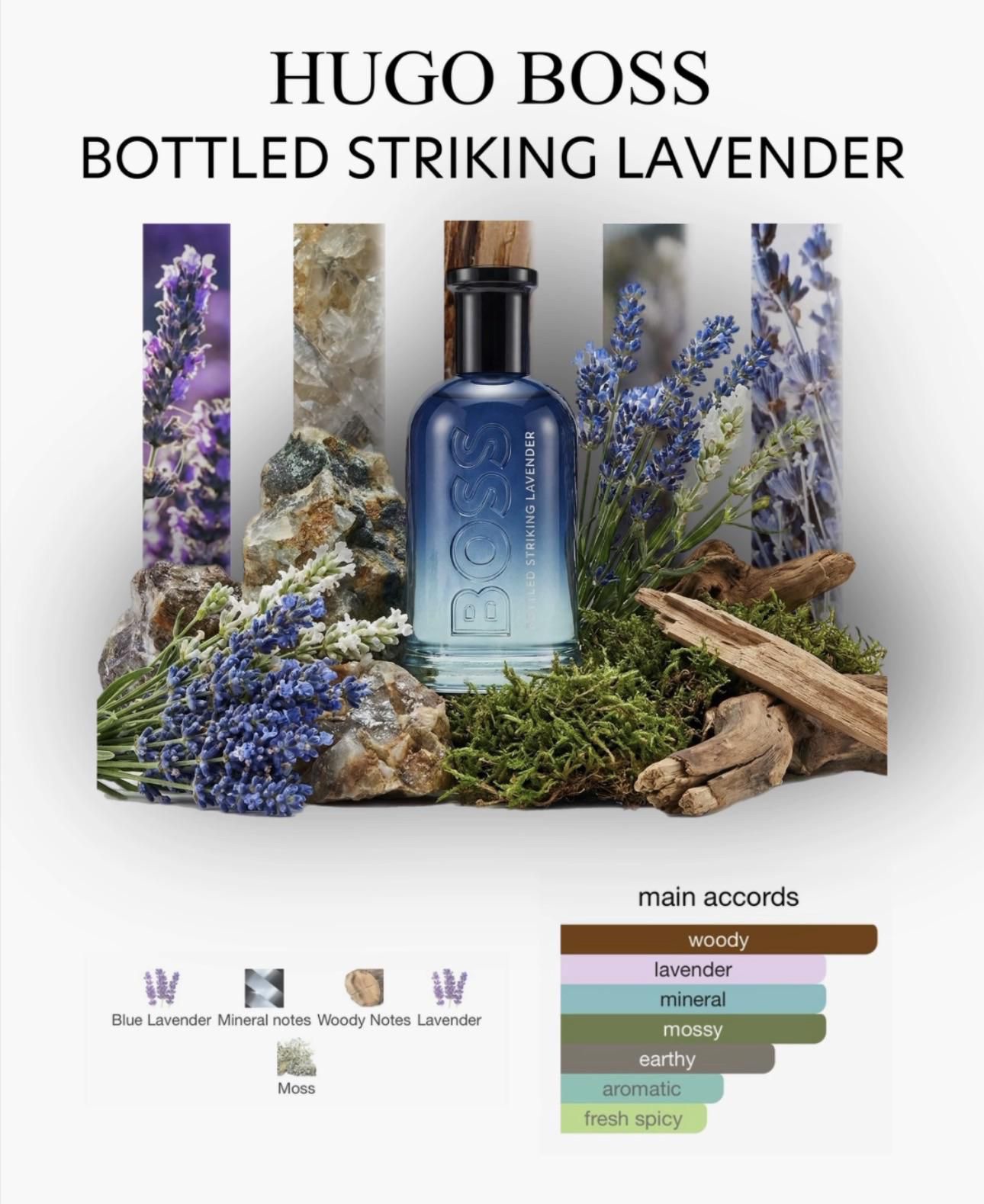 Boss Bottled Striking Lavender de Hugo Bosses una fragancia de la familia olfativa Aromática Fougère para Hombres. Esta fragrancia es nueva. Boss Bottled Striking Lavender se lanzó en 2026.